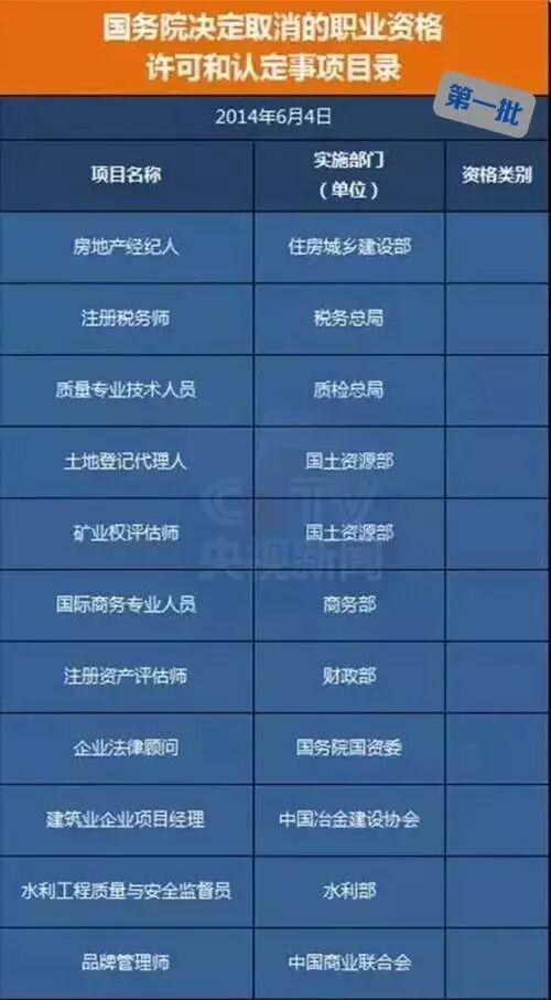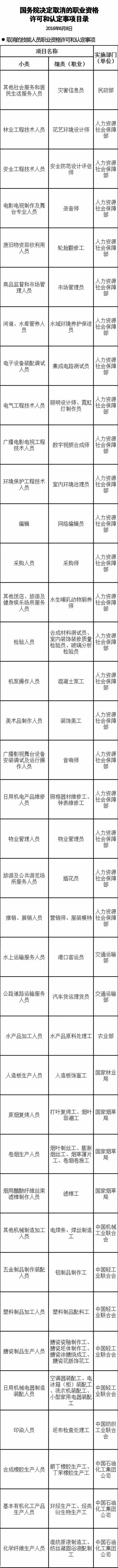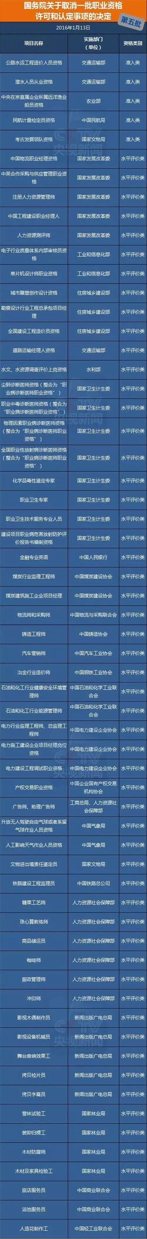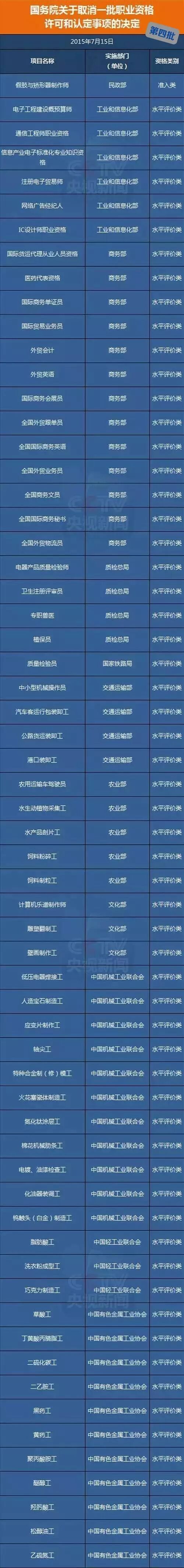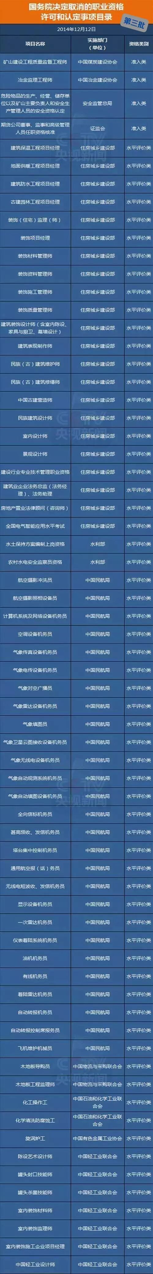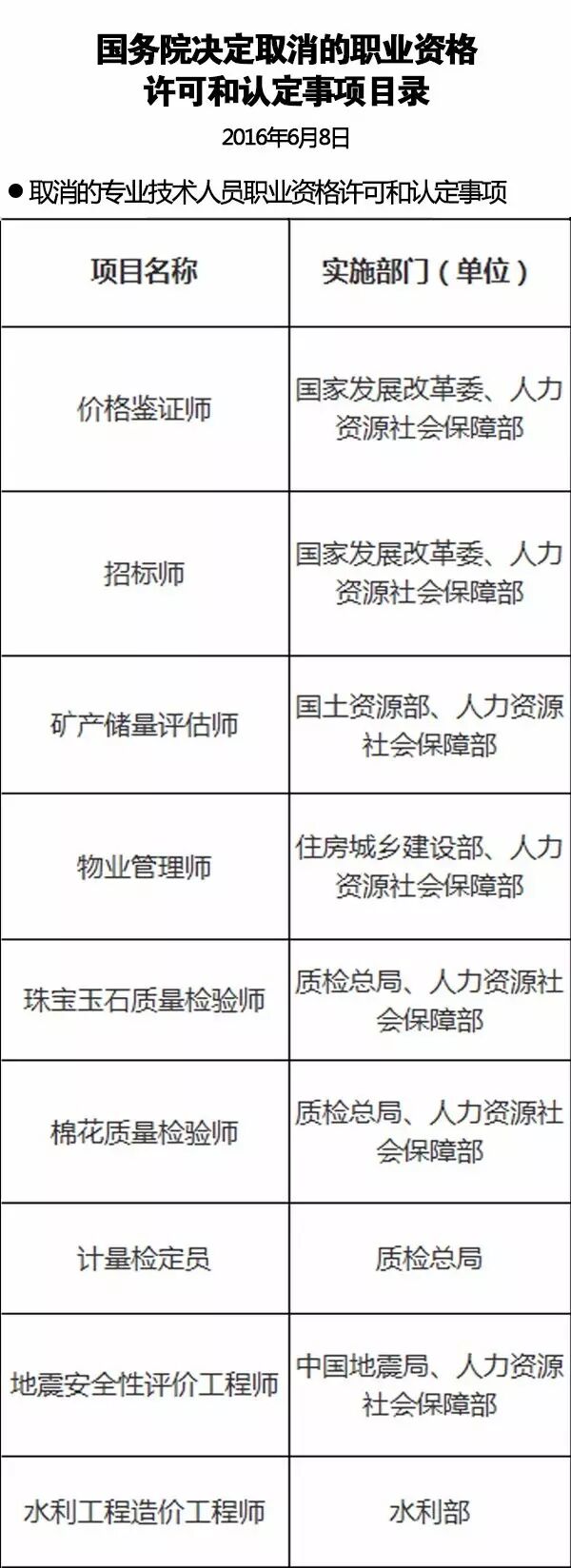 国务院日前印发《关于取消一批职业资格许可和认定事项的决定》,公布了6月1日国务院常务会议决定取消的47项职业资格许可和认定事项的名单目录,其中就包括上述这些职业资格。