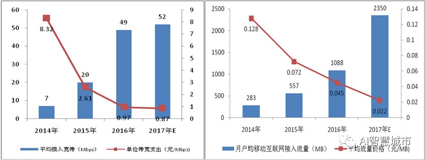 图2 2014-2017年我国固定宽带和移动数据提速降费情况