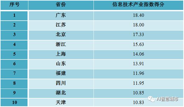 广东、江苏、北京、浙江、上海、山东、福建、四川、湖北、天津等10个地方位列各省(区、市)信息技术产业指数排名前十位。上述地区高度重视信息技术产业发展和生态体系建设,出台促进信息技术产业发展的相关规划和行动计划,强化信息技术创新带动作用,围绕产业链布局创新链,以创新链提升价值链,加快发展新一代信息技术产业,培育壮大电子制造业、软件与信息技术服务产业,推动大数据广泛应用于经济社会发展各领域,产业创新发展和辐射带动作用明显增强。