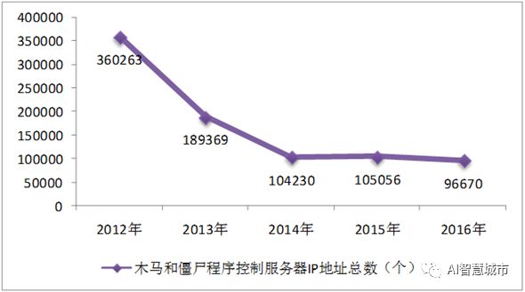 图7 2012-2016年木马和僵尸程序控制服务器IP地址数量对比