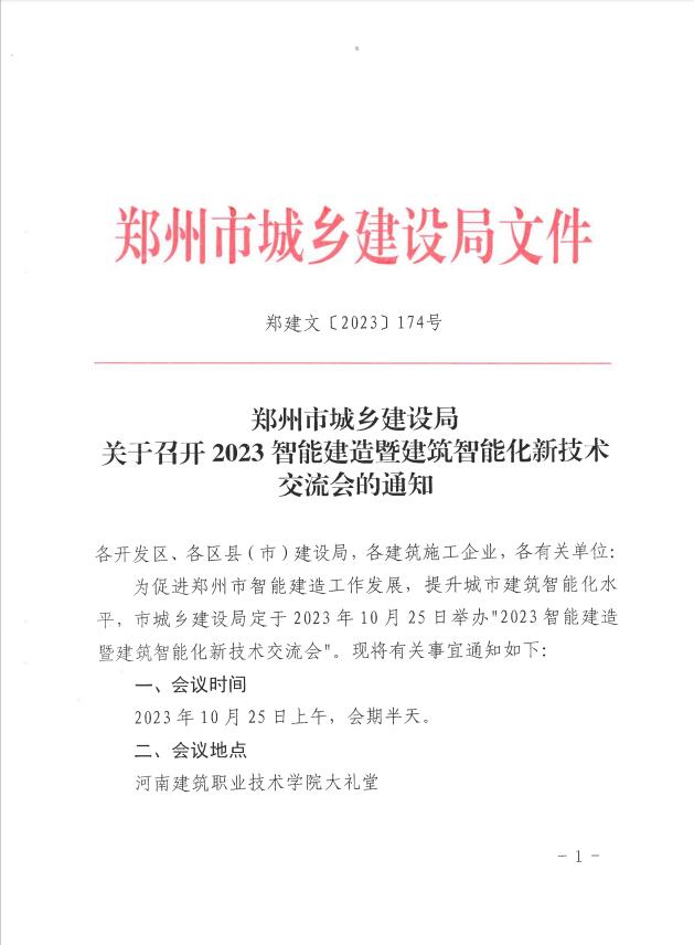 互联网时代,数字化催生着各个行业的变革与创新,建筑行业也不例外 。在“数字经济”战略驱动下,以物联网、大数据和人工智能为代表的新一代信息技术与传统建造行业加速融合,推动建筑产业转型升级,以智能建造为核心的“中国建造”迎来新的发展机遇。为促进郑州市智能建造工作发展,提升城市建筑智能化水平,市城乡建设局定于2023年10月25、26日举办"2023智能建造暨建筑智能化新技术交流会及郑州市第九届职业技能竞赛弱电工程行业弱电工大赛"。现将有关“2023智能建造暨建筑智能化新技术交流会”事宜通知如下: